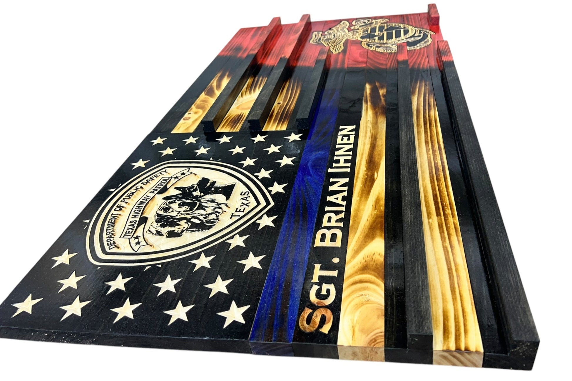 - Personalized Text: Add a name, rank, years of service, or any special message to the middle stripe.